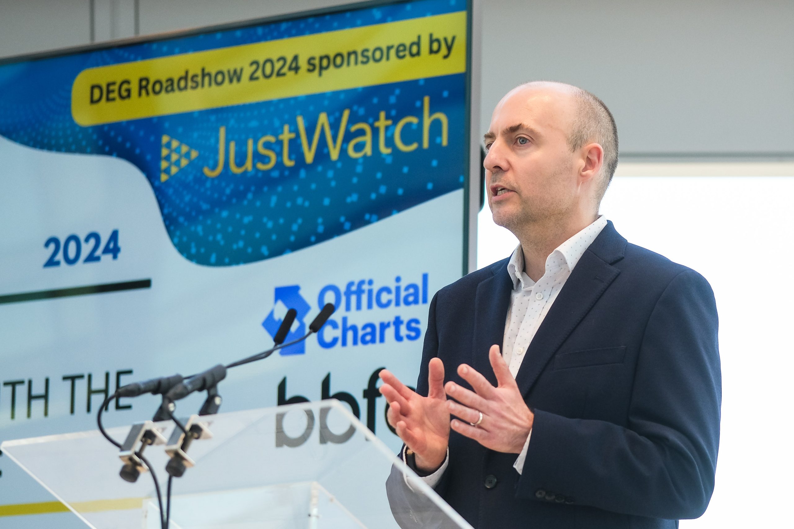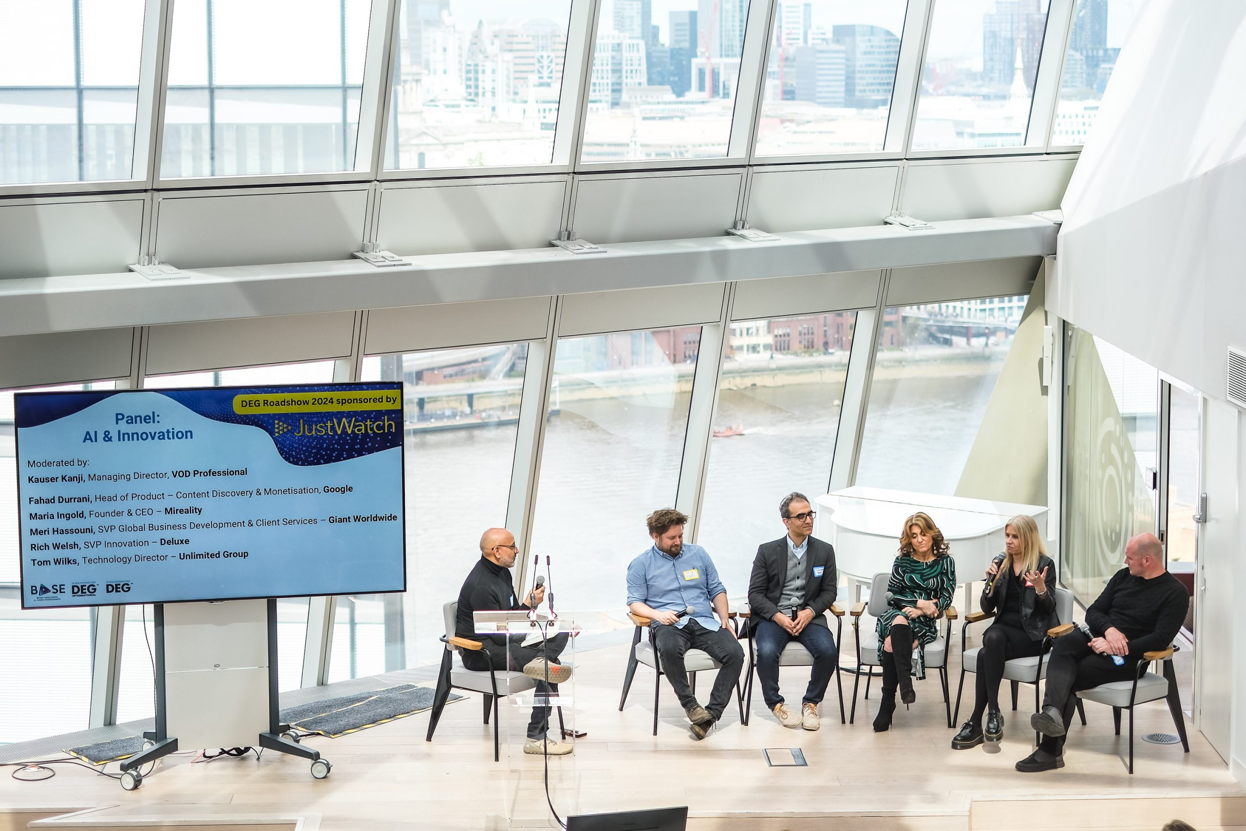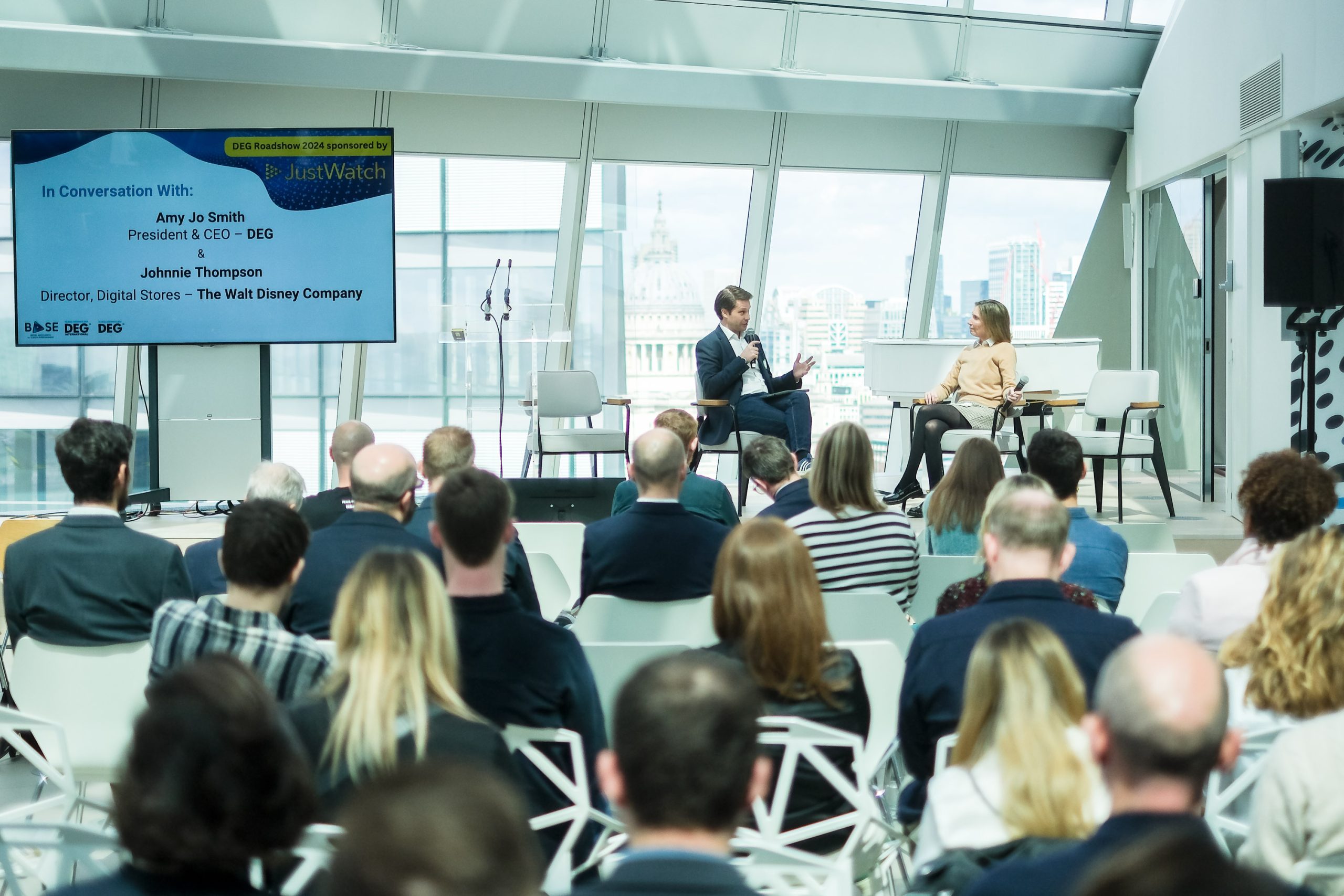 Following on from the successful second stop in Stockholm, The DEG Roadshow and BASE Screen Forum welcomed the Home Entertainment community on global research provider Omdia’s stunning 19th floor. The packed agenda addressed the theme of “Maximising Value & Engagement” to over 120 guests from 55 companies across the Home Entertainment industry. We were also joined by our sponsors JustWatch Media, BBFC (British Board of Film Classification) and Official Charts.